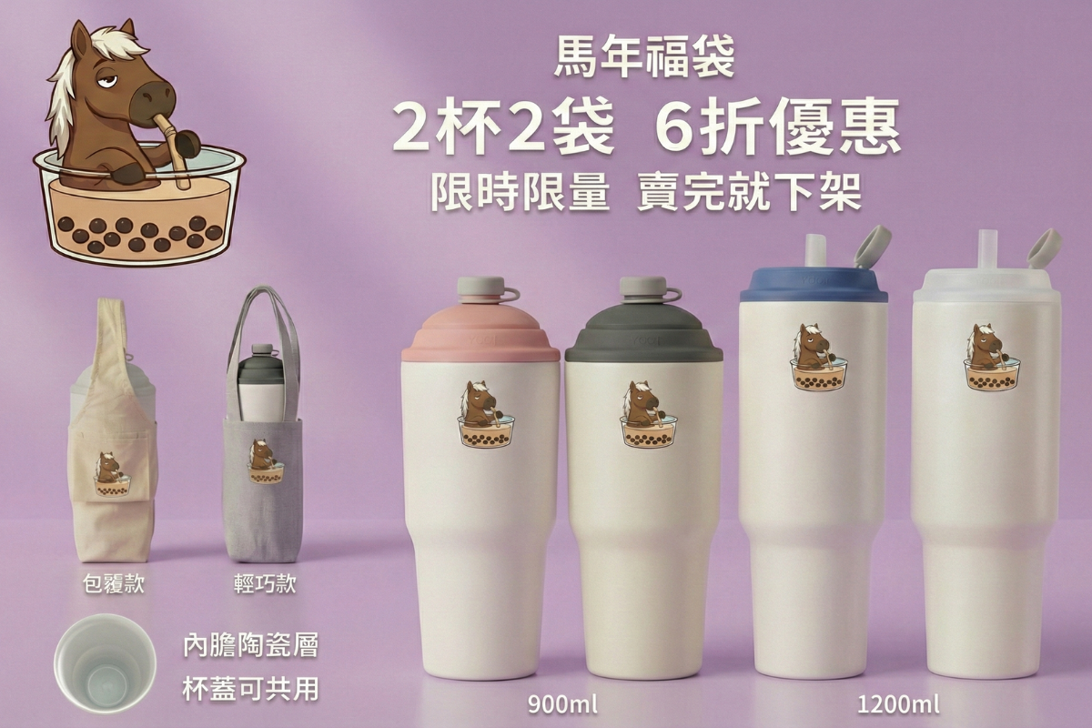 【馬年福袋】速吸杯3代900ml + 1200ml(內膽陶瓷層) + 提袋包覆款 + 輕巧款