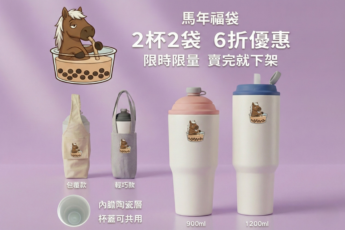 【馬年福袋 2杯2袋1998元】速吸杯3代900ml + 1200ml(內膽陶瓷層) + 提袋包覆款 + 輕巧款