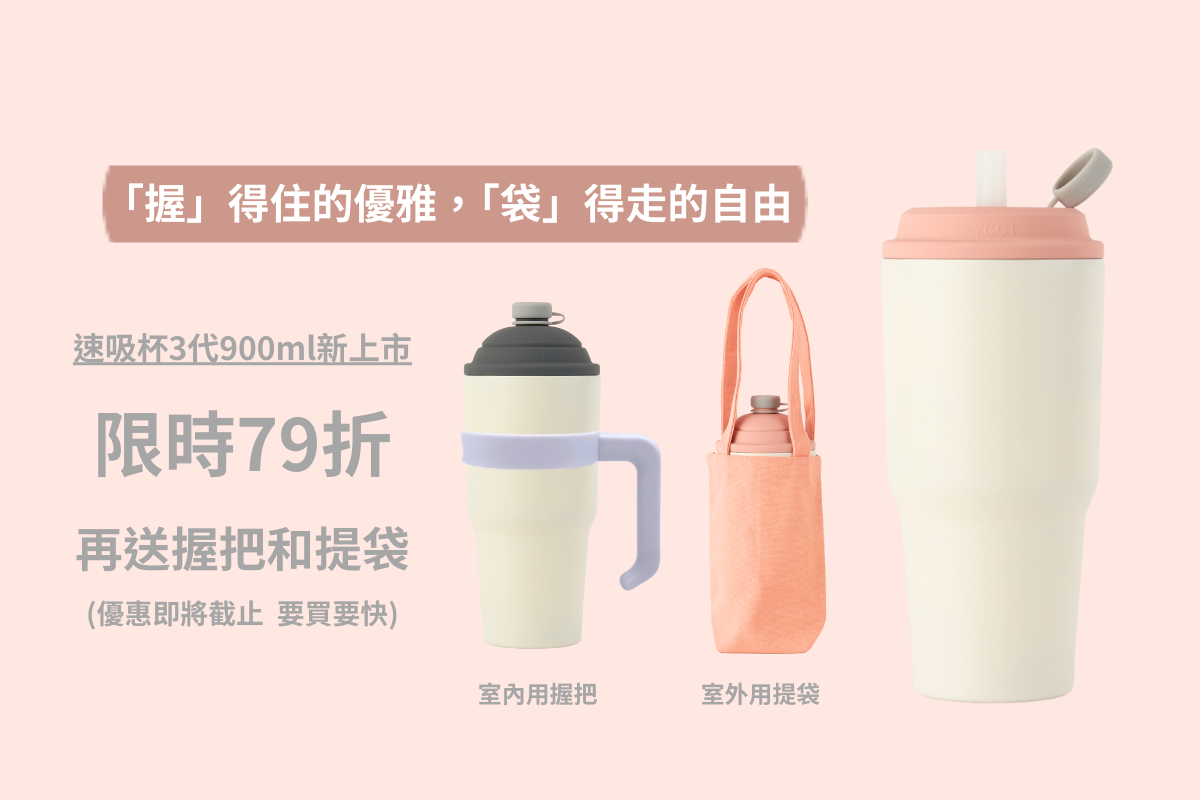 【限時79折 + 送握把和提袋】速吸杯3 代900ML|專利瞬收吸管 + 陶瓷塗層
