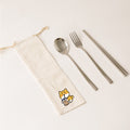 無論是在辦公室、自煮午餐,還是旅行露營,這組簡約實用的316不鏽鋼餐具組,都是您隨身攜帶的理想選擇。質感銀色外觀,搭配療癒圖案的棉質帆布收納袋,展現生活品味。